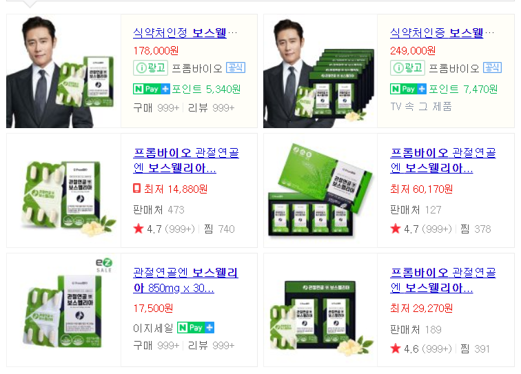 보스웰리아는 인터넷 상에서 쉽게 구매하실 수 있습니다. 네이버나 다음과 같은 포털사이트에 프롬바이오 보스웰리아를 검색하시면 되는데요 제가 검색해본 바로는 30정 한 통의 최저가가 약 15,000원 정도였어요!
