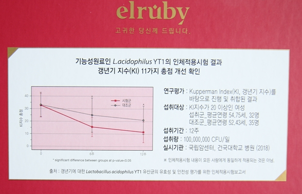 갱년기 유산균YT1의 인체적용시험 결과라고해요!