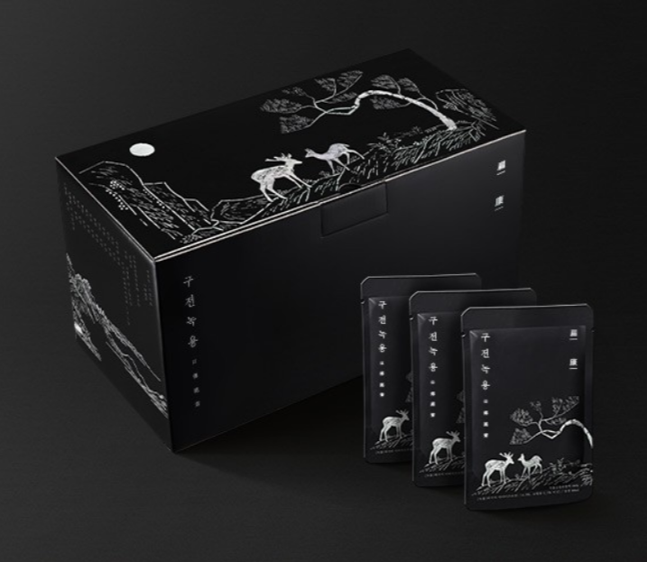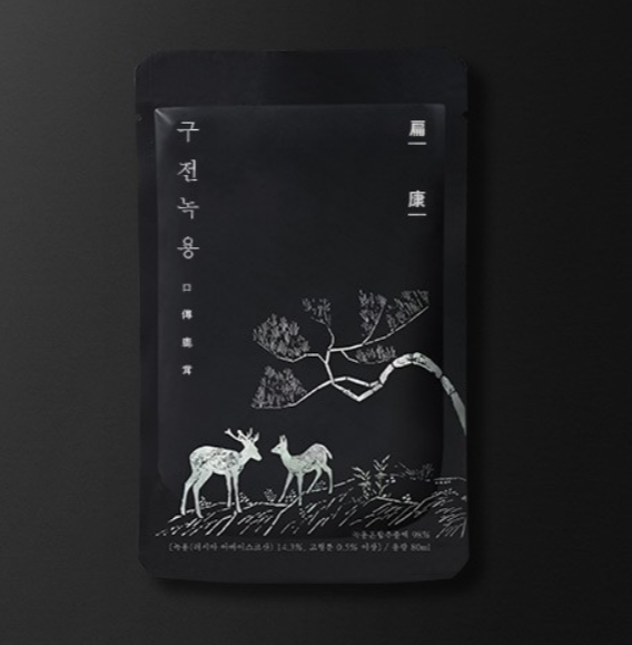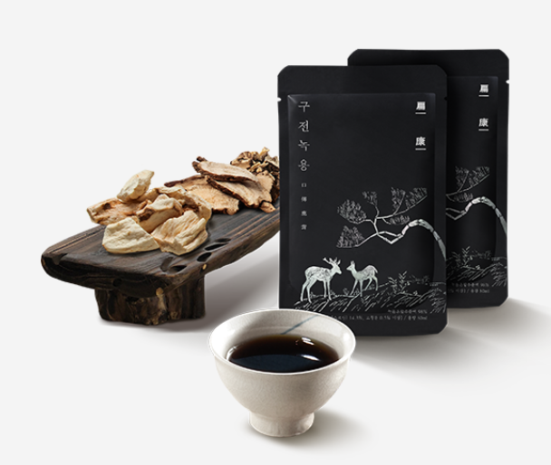 추가적으로 구전녹용에는 숙지황, 당귀, 천궁, 작약, 삽주, 복령, 감초, 황기, 산약, 황정, 맨묵동, 맥아, 길경, 생강, 대추, 홍삼, 오미자 추출액 등의 몸에 좋은 다양한 재료가 함유되어있고 단 맛을 위해서 각종 식품첨가물이 아닌 아카시아 벌꿀을 이용하였다고 합니다!