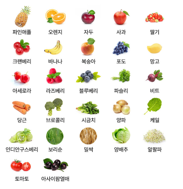 뉴트리코어 NCS 프로폴리스는 주 성분 프로폴리스와 함께 45종의 부 원료가 사용되는데요 과채 같은 경우에는 모두 비료나 농약을 사용하지 않은 유기농 제품들을 사용했다고 해요!