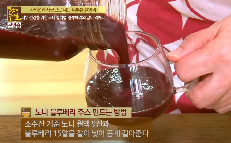 노니 원액 9잔 블루베리 15알을 같이 넣어