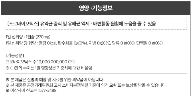 유산균 제품은 너무 과다하게 섭취하면 배탈, 설사, 메스꺼움 등의 증상이 발생할 수 있어요. 꼭 하루 권장 섭취량을 지켜서 복용하시길 바랍니다. 또한 섭취 시 위장장애나 소화불량 등 이상 반응이 있을 경우 바로 섭취를 중단하시고 병원에서 치료 중이거나 다른 약물을 복용하시는 분은 전문가와 상의 후에 복용하시길 바랍니다.