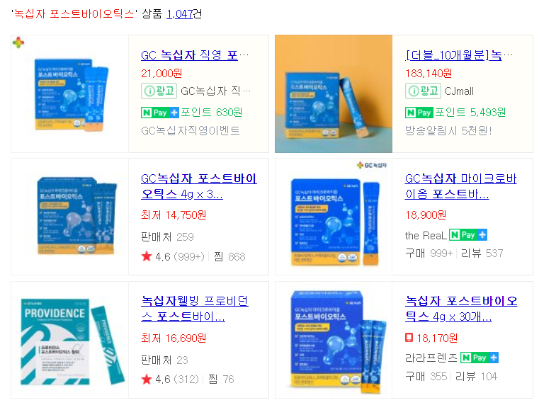 녹십자 포스트바이오틱스는 온라인 상에서 쉽게 구매할 수 있는데요 제가 직접 검색해보니 4g x 30포(1달치) 기준의 최저가가 14,700원 정도 였어요!