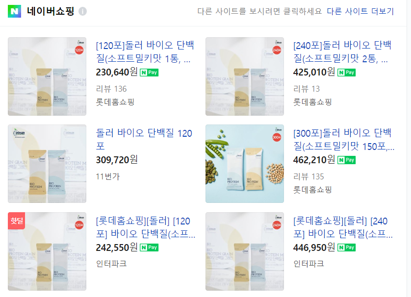 돌러 바이오 단백질은 현재 120포 기준으로 약 230,000원 정도의 가격대가 형성되어 있습니다! 달콤한 비날라맛을 내는 소프트밀키와 고소한 곡물맛을 내는 그레인 총 두 가지 제품이 있으니 각자 기호에 맞게 선택하시면 될 것 같아요.