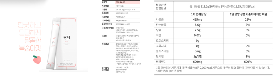 링티는 레몬맛과 복숭아맛 두 가지의 맛이 있어서 약간씩 성분과 영양정보가 차이가 나고 있으니