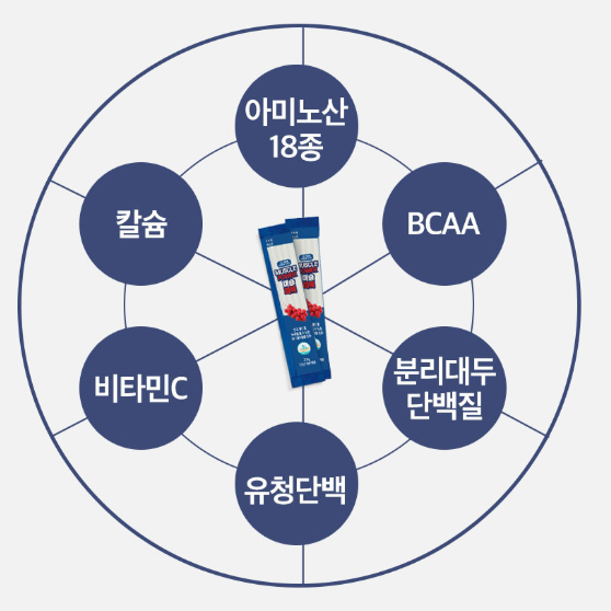 머슬파워에는 부원료 또한 꼼꼼하게 엄선하여 아미노산 18종, 칼슘, 비타민C, 유청 단백, 분리 대두 단백질, BCAA 등의 성분들 담았다고 합니다.
