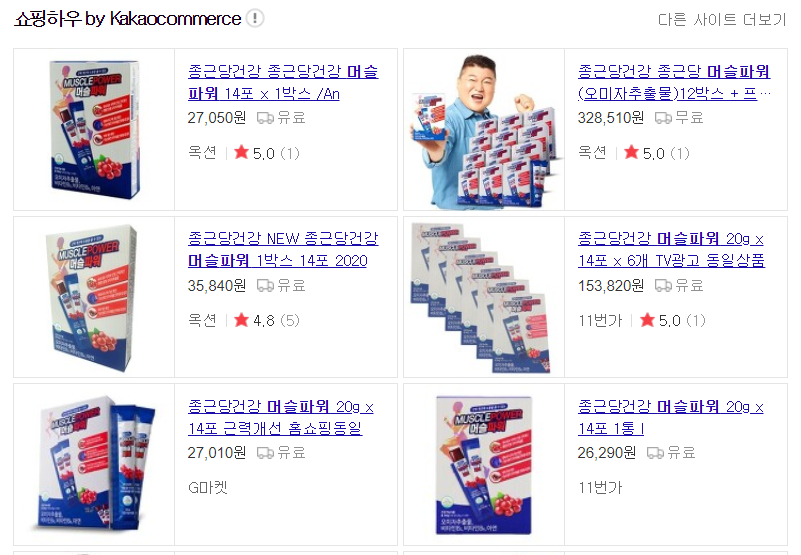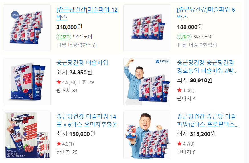 머슬파워는 현재 네이버나 다음과 같은 포털사이트에서 쉽게 구매하실 수 있는데요, 제가 검색해본 결과로는 1박스 기준 약 2~3만 원 정도에 판매되고 있었어요!