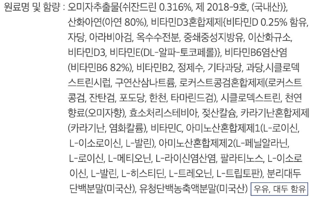 ※특이체질 및 알레르기 반응이 있으신 분들은 아래 성분표 참고하셔서 섭취 시 주의하시기 바랍니다.