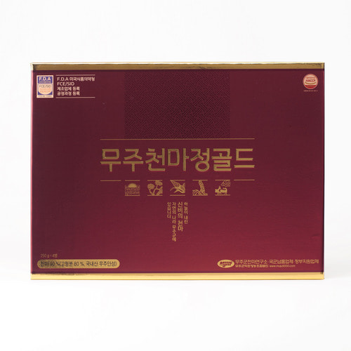 무주천마정골드는 무주 청정지역에서 자라난 친환경 농산물인 천마를 주원료로 사용한 고농축 제품이라고 해요! 아마 천마라는 식물이 다들 생소하실텐데요, "하늘에서 떨어진 마" 라는 뜻을 가지고 있는 천마는 난초과에 속하는 마가 구황작물로 성질이 평하고 독성이 없는 귀한 식물입니다. 그 중에서 전라북도 무주는 천마의 생육조건인 마사토질과 준고랭지 기후를 모두 갖춘 천마 재배의 최적지로 천마 중에서도 으뜸으로 꼽히는 것이 바로 무주 천마입니다!