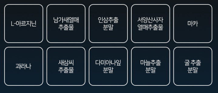 이 밖에도 10가지의 부원료가 포함되어 있어 남성의 전립선 건강과 지구력 증진에 도움을 줄 수 있다고 합니다.