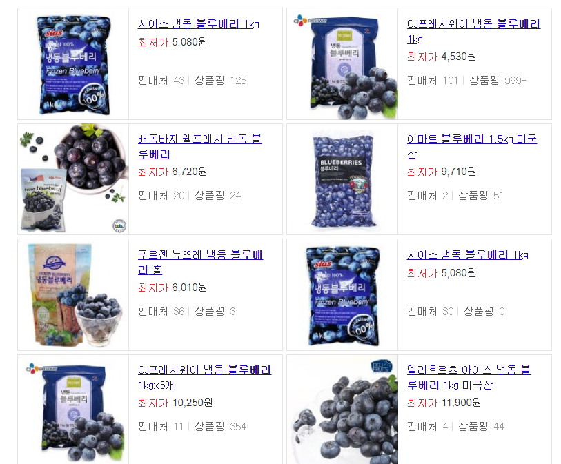 블루베리의 가격은 제가 검색해본 바로는 1kg에 4천원 대부터 2만원 대까지