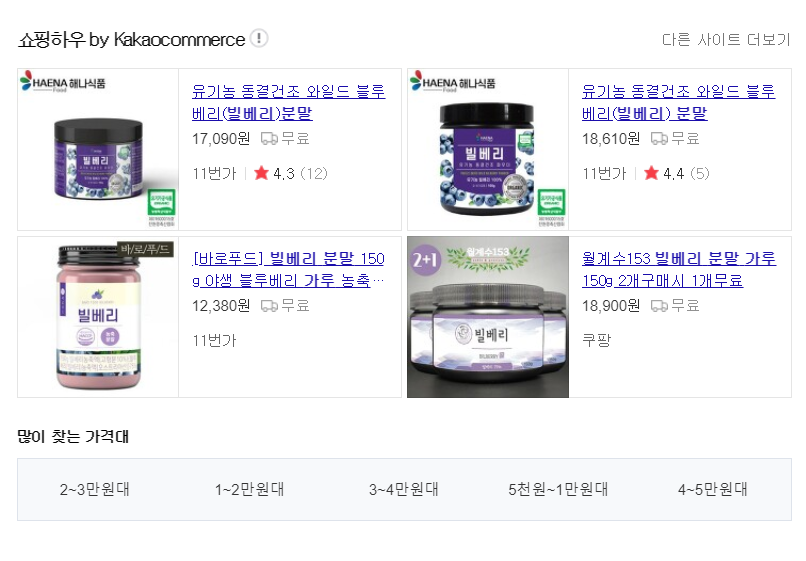 국내에서 빌베리 생과는 구매하기가 어렵고 섭취하기 쉽도록 분말 형태나 빌베리 추출물이 들어간 영양제로도 많이 판매하고 있습니다!