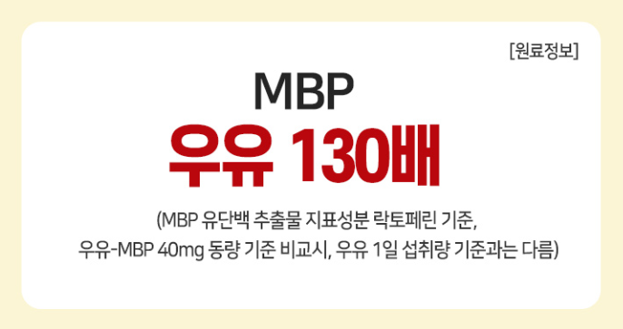 우유에는 유당, 필수 아미노산, 비타민, 미네랄 등 필수 영양소가 풍부하게 들어있어 완전식품으로 불리는데요, 우유를 끓인 뒤에 식고나서 얇은 막이 생기는걸 보신 적이 있을거에요! 그게 바로 유청인데요, MBP가 바로 그 유청에서 뽑아내는 것인데요, 뼈엔MBP에는 우유의 약 130배나 되는 MBP를 함유하고 있습니다.