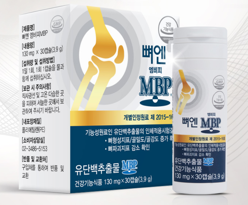 오늘은 뼈 건강에 도움을 줄 수있는 건강기능식품을 하나 소개해드리려고 하는데요, 바로 뼈엔 엠비피 MBP 입니다.
