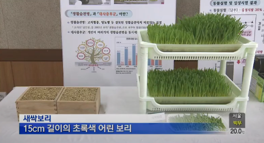 많은 도움을 주는데요 성인 남성 62명을 대상으로 16주간 새싹보리 추출물을 섭취하도록 하였더니 중성지방 10.4% 감소 몸무게 8.4% 감소하는 실험결과를 보였다고 합니다.