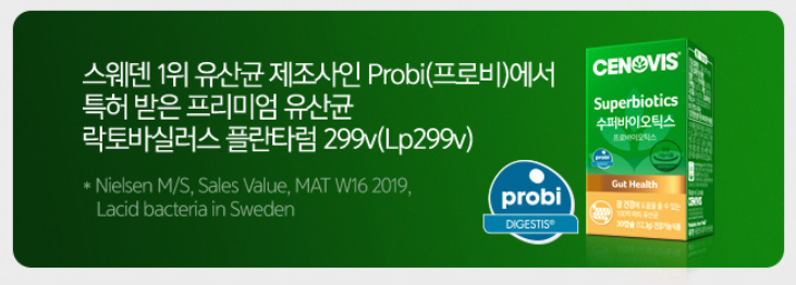 세노비스 수퍼바이오틱스에 사용 된 유산균은 스웨덴 1위 유산균 제조사인 Probi(프로비)에서 특허 받은 프리미엄 유산균인 락토바실러스 플란타럼 299v(Lp299v)를 사용하였습니다. 이 락토바실러스 플란타럼 299v는 장내 유해균은 줄여주고 유익균은 늘려주어 장 벽을 강화하는데 효과적인 유산균입니다.