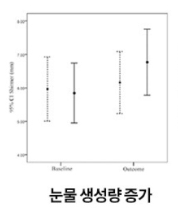 실제로 기능성 원료 EPA 및 DHA 함유유지를 건조한 눈을 가진 45~90세 성인에게 섭취하게 하였더니, 눈물층 형성시간, 눈물 생성량, 안구표면지수에서 모두 유의적인 개선 결과가 나타난 것을 확인할 수 있었습니다.