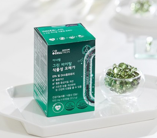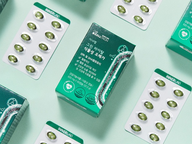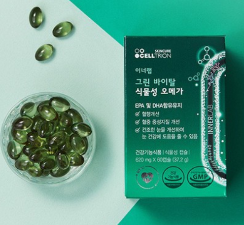 그린바이탈 식물성 오메가3는 셀트리온 스킨큐어의 건강기능식품 브랜드 '이너랩' 에서 만들어진 건강기능식품이에요! 이너랩은 지난 7월 출시한 초유 단백질이 런칭 4개월만에 매출 100억을 달성하고, 그 후에 출시한 플라센타 역시 홈쇼핑 완판을 기록하며 많은 분들에게 인기를 끌고 있는 것 같습니다.