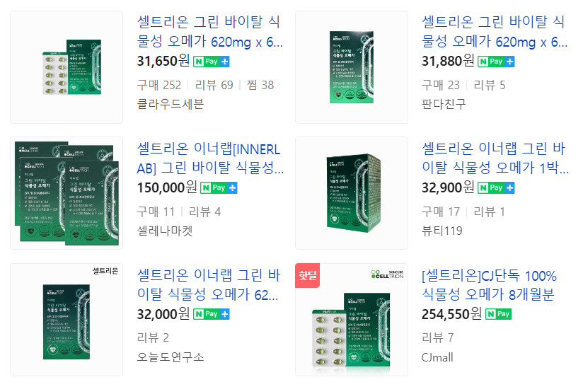 셀트리온 식물성 오메가3는 현재 60캡슐(1달분) 기준으로 31,000원 정도의 가격이 가장 저렴한 가격이었어요.