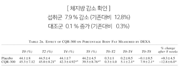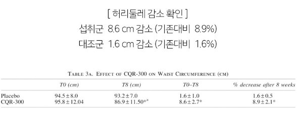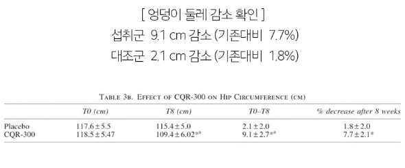 스키니랩 시서스는 주 원료로 시서스추출물(CQR-300)을 사용하고 있는데요 이 성분이 바로 체지방 감소에 도움을 줄 수 있음을 인정받은 개별 인정형 원료입니다! 시서스 추출물은 시서스를 600% 농축한 100% 식물성 원료로, 8주간 인체 적용 시험을 통해서 체중 감소, 체지방 감소, 허리둘레 감소, 엉덩이 둘레 감소 등의 개선 효과를 확인할 수 있었습니다!