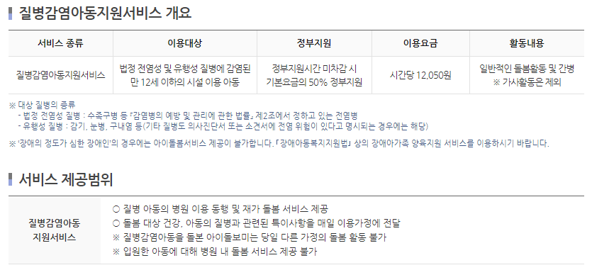 질병감염아동지원 서비스는 유치원, 초등학교 등 시설 이용 아동이 전염성 및 유행성 질병 감염 등에 의해 불가피하게 가정양육이 필요한 경우 아이돌보미가 돌봄 장소에 직접 찾아가서 돌봄을 제공하는 서비스를 말합니다.