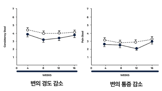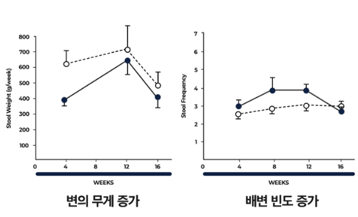 식이섬유는 현대사회에서 우리 몸에 중요한 제6의 영양소로 각광받고 있는 성분으로, 대장에 정상적으로 존재하는 미생물을 위한 발효성 작용을 하여 대장 기능에 도움을 주는 역할을 하고 있습니다. 차전자피식이섬유는 체내에서 물과 만나게되면 40배나 팽창하게 되는데, 이는 장을 건강하게 자극하여 밀어내는 연동활동을 촉진하고 배변양을 늘려서 쾌변을 돕고 혈중콜레스테롤 개선에도 도움을 준다고 합니다! 대장 기능이 좋지 않은 미국인 22명을 대상으로 8주 동안 기능성 원료 차전자피식이섬유를 섭취하게 하였더니 배변 활동이 개선되는 것을 확인할 수 있었습니다.