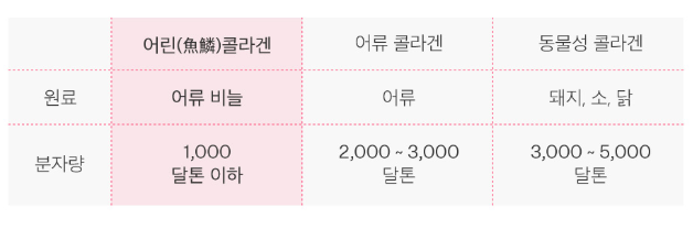 여에스더 어린 콜라겐의 특징을 살펴보면 순도 100%의 어린 콜라겐을 사용하였다는 것인데요, 우리가 평소에 닭발이나 돼지껍데기 같은 음식에서 섭취하는 육류 콜라겐은 분자의 크기가 약 3,000~5,000 달톤으로 너무 커서 체내 흡수율이 매우 떨어진다고 해요. 여에스더 어린 콜라겐은 생선의 비늘에서 추출한 콜라겐으로 분자의 크기가 512달톤밖에 되지 않아서 피부 속까지 바로 전달되고 흡수된다는 장점이 있습니다.