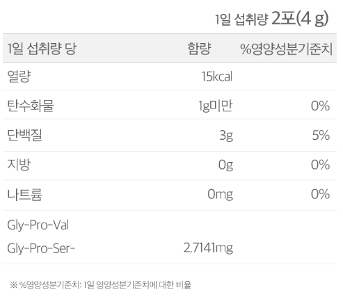 큰 부작용은 없다고 알려져 있지만 콜라겐은 너무 과다하게 드시면 설사나 복통 등의 증상이 발생할 수 있으니 하루 권장 섭취량을 지켜서 복용하시길 바랍니다. 섭취 시 위장장애나 소화불량 등 이상 반응이 있을 경우 바로 섭취를 중단하시고 병원에서 치료 중이거나 다른 약물을 복용하시는 분, 임산부 및 수유부는 복용 전에 전문가와 상의 후에 복용하시길 바랍니다.