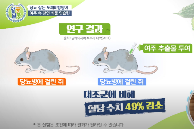 비하여 혈당 수치가 49% 감소했다는 실험결과도 보였습니다.