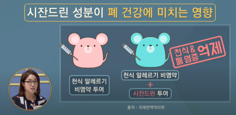 한 실험에서 천식 알레르기를 유발한 쥐에게 이 시잔드린 성분을 투여했더니 천식과 폐의 염증이 억제되었다는