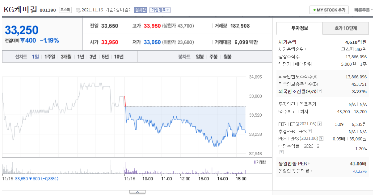 KG케미칼은 1954년 12월에 설립되었으며, 주요 사업은 화학부문, 에너지부문, 미디어 및 금융부문, 전자결제부문, 교육사업부문, 요식업부문, 철강 및 항만업, 부동산 임대업 등으로 구분되어 있습니다. 연결대상 종속기업으로 (주)케이지, 이데일리(주), 케이지동부제철(주), 케이지스틸(주), 케이지에너켐(주), (주)케이지에듀원, (주)케이지에프앤비 등이 있습니다.