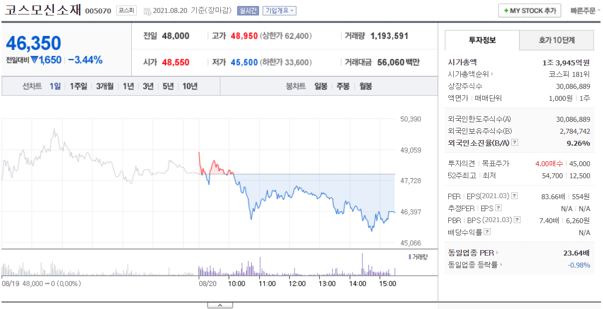 코스모신소재는 자기테이프 제조 및 판매사업을 주목적으로 설립되어 1987년 9월 유가증권시장에 상장하였으며, 현재는 기능성 필름과 2차전지용 양극활물질, 토너 등을 제조, 판매하고 있으며, 전기차 배터리 관련주입니다. 주요 고객사로는 삼성전기 등이 있으며, 2015년 2차전지용 양극활물질 사업에 집중하기 위해 옥사이드와 비디오테이프 사업을 중단하였습니다. 코스모신소재는 스마트폰을 비롯 디지털카메라, 노트북 등 디지털기기, 전동공구, HEV 등의 전지에 충/방전 역할을 하는 2차전지용 양극활물질을 생산하며, 연산 6,550톤의 생산능력을 확보하고 있습니다. 코스모신소재의 실적은 2021년 3월 전년 동기 대비 매출액은 83.3% 증가하였고 영업이익 279.5%, 당기순이익 258% 크게 증가하였습니다.
