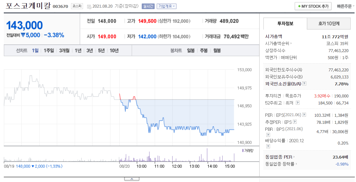 전기차 관련주 : 포스코케미칼