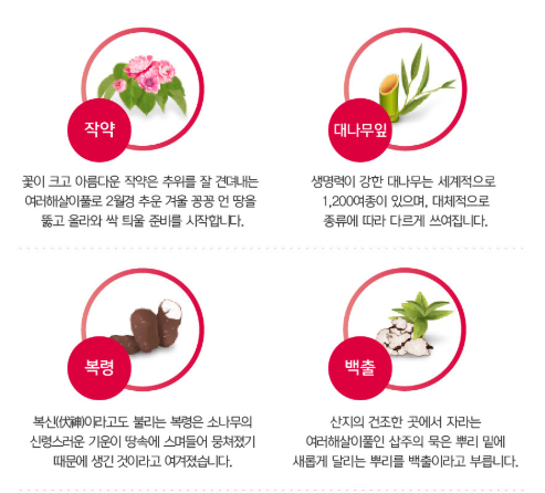 또한 부원료로 석류를 사용하였는데 석류의 천연 에스트로겐 성분은 여성호르몬의 분비를 촉진시켜서 여성 갱년기 증상을 완화시켜주고 체내의 호르몬 불균형을 개선하는데 도움을 줍니다.