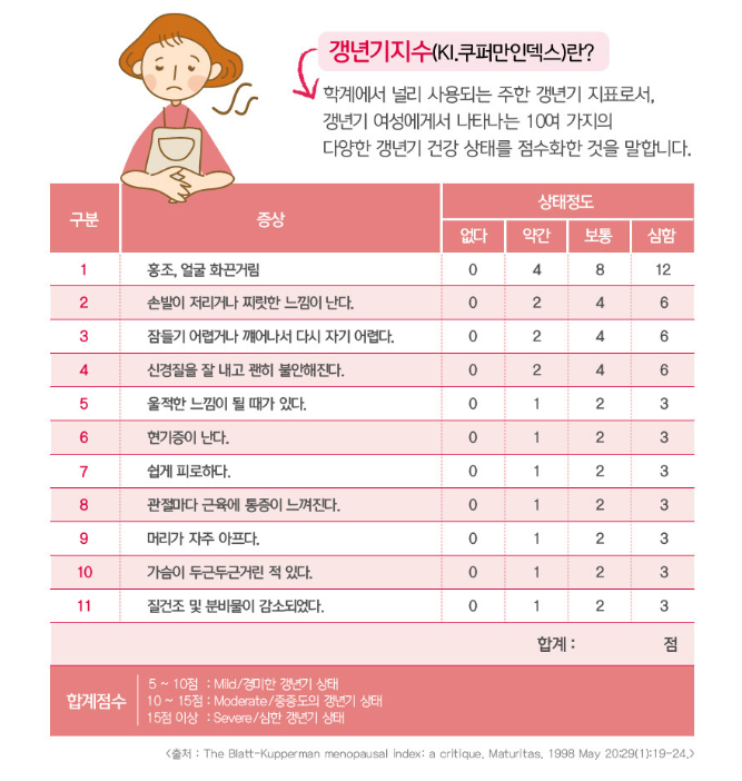 아래는 갱년기 지수를 측정할 수 있는 표인데