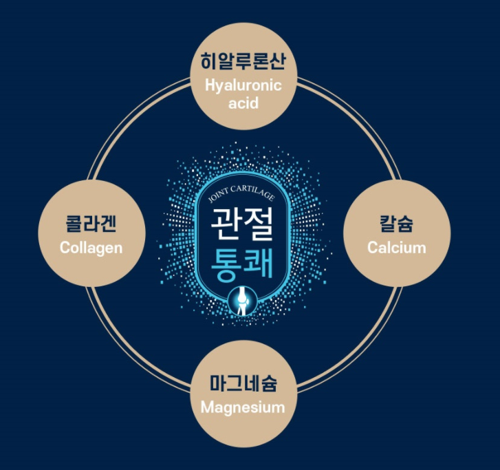 관절통쾌에는 또한 비타민 D 성분과 부원료로 히알루론산, 콜라겐, 칼슘, 마그네슘 등의 성분이 함유되어 있어서 골다공증 발생 위험 감소에 도움을 주고, 뼈의 형성과 유지, 칼슘과 인이 흡수되고 이용되는데 도움을 준다고 합니다.