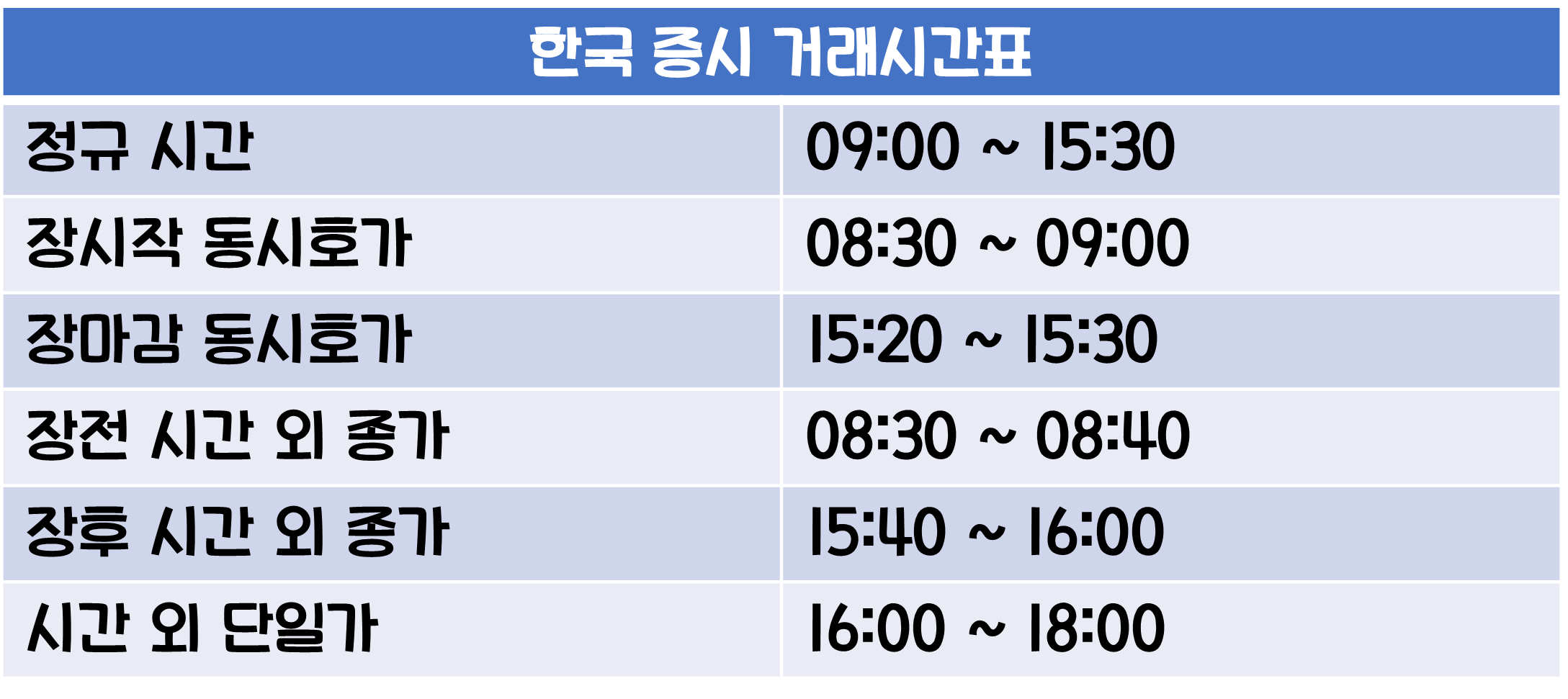 안녕하세요 모두 오늘 하루는 잘 보내고 계신가요? 오늘은 주식 시간 외 거래 시간 및 방법 등의 내용을 정리해보려고 합니다. 주식시장에도 다른 시장과 동일하게 개장 및 폐장 시간이 있습니다. 한국 증시의 거래시간은 오전 9시부터 오후 3시 30분까지 인데요, 이러한 정규 거래시간 외에도 주식을 사고팔 수가 있습니다. 아래에서 시간 외 거래에 대해 자세하게 알아보도록 하겠습니다.