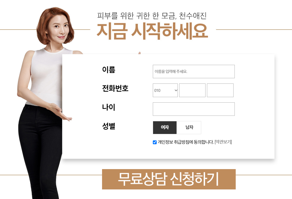 천수애진 가격은 회사 방침상 공개를 하지 못하게 되어있어서 제 마음대로 가격 공개를 해버리면 브랜드측에서 제재를 받을 수도 있다고 하더라고요ㅠㅠ 천수애진 공식홈페이지에 들어가셔서 우측 상단에 가격확인하기를 누르시면 상담을 통해서 가격을 알려준다고 하니까 참고하시길 바랍니다!