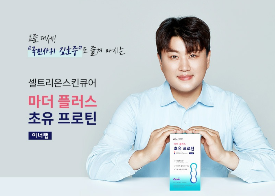 제가 추천드리는 제품은 바로 셀트리온 마더플러스 초유 프로틴입니다. 바로 미스터트롯의 김호중씨가 전속모델로 활동 중인 제품이에요.