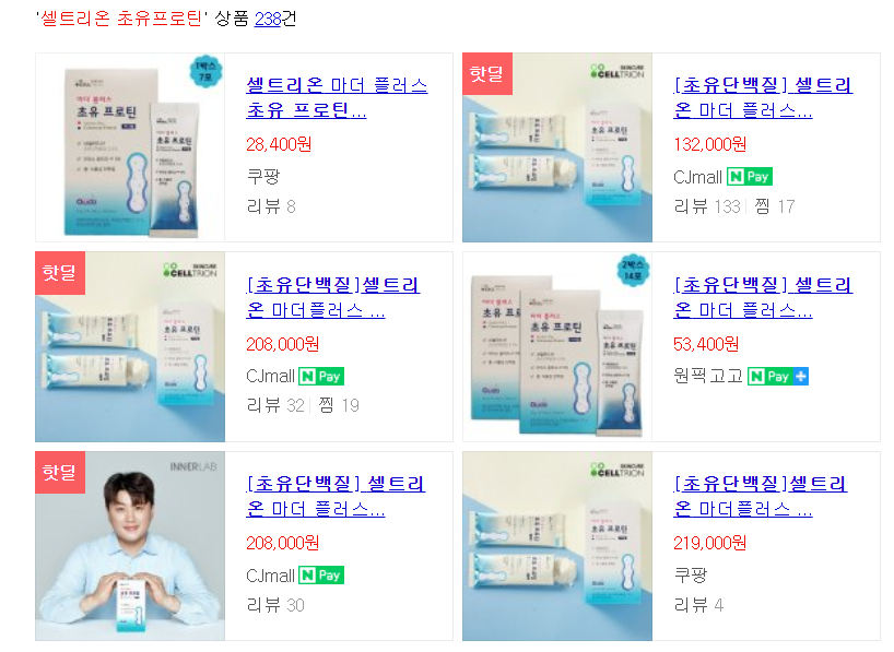 셀트리온 마더플러스 초유프로틴은 현재 1박스 기준으로 약 20,000원이 제가 알아본 최저가였습니다.