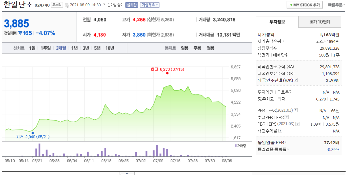 산업부에서 자동차 부품 국산화 및 계열화 전문공장으로 지정한 기업 중 하나입니다. 첨단 정밀 자동차 부품을 국내 외에 공급하고 있습니다. 한일단조는 방위산업에도 진출하여 있는데요, 유도탄 탄체, 탄두, 중장비 부품 등도 생산·공급하고 있습니다. 주요 거래처로 국내 주요 자동차, 방산 업체뿐만 아니라 해외 자동차 부품 및 완성차 업체도 거래처로 확보하고 있습니다. 최재형 전 감사원장의 고향이 진해이며, 진해에 대규모 부동산을 보유하고 있다는 이유로 최재형 관련주로 편입된 케이스입니다.