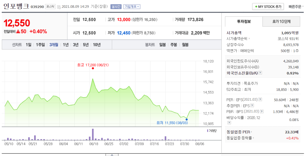 인포뱅크는 유무선 및 방송 통신네트워크 소프트웨어 개발 및 서비스 사업을 영위할 목적으로 1995년 6월 14일에 설립되었으며, 인포뱅크는 모바일 메시징 서비스 중 대부분의 매출을 차지하는 기업용 문자메시지 사업을 운영하고 있습니다. 이 서비스의 주요 고객은 금융권 이외에도 포탈, 인터넷 기업 등 IT기업 및 유통 관련 기업들로 구성되어 있습니다. 인포뱅크는 대표이사 박태형 대표이사가 최재형 전 감사원장과 서울대학교 동문이라는 점이 부각되면서 최재형 관련주로 편입되었습니다.