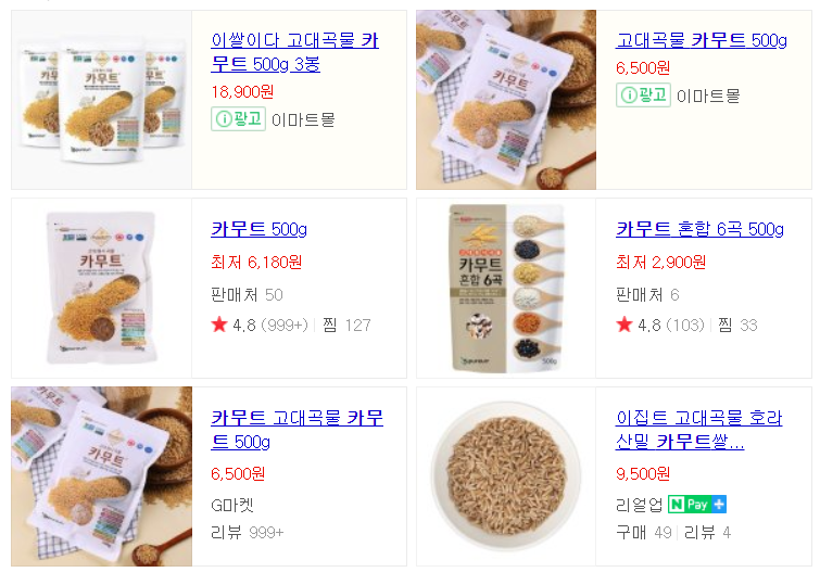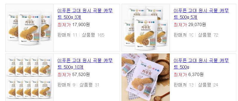 '카무트'를 검색하시면 쉽게 구매할 수 있는데요
