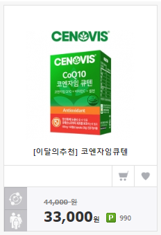 세노비스 코엔자임 큐텐은 현재 세노비스 공식 홈페이지에서 1박스에 33,000원에 판매하고 있었고 2,3박스를 사면 좀 더 저렴하게 구매할 수 있었어요.