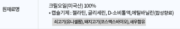 크릴은 남극의 청정 해역에서 서식하는 동물성 플랑크톤이에요. 크릴은 먹이사슬의 최하위 단계에 속하여서 환경 호르몬과 중금속으로부터 매우 안전한 식량입니다. 또한 까다롭기로 소문난 EU에서도 노벨 푸드로 선정되어 최근 미래 식량으로 많은 인기를 끌고 있는 식품입니다. 크릴오일은 이 크릴에서 추출한 기름인데요 혈류개선과 다이어트, 치매 방지 등에도 좋은 효능이 있는 것으로 알려졌어요.