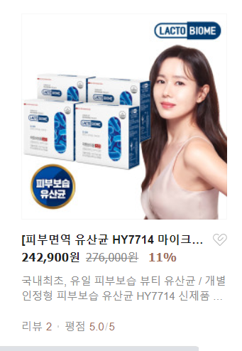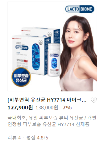 최근에 피부 유산균이라는 것을 알게 되었는데요, 식약처로부터 피부 건강의 기능성을 인정받은 원료 HY7714를 사용하여 장 건강과 근본적인 피부 개선에 도움을 줄 수 있다고 해요!