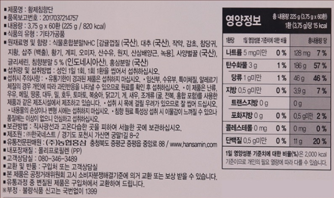 농협의 홍삼 대표 브랜드 한삼인에서 출시 된 황제침향단입니다.