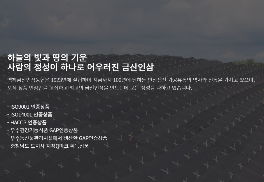 저는 건강식품을 선택할 때 제조업체를 먼저 살펴보는 경향이 있어서 업체의 홈페이지를 살펴보았더니 홍관보는 백제금산인삼농협에서 만들어진 제품 무려 100년의 역사를 자랑하고 있는 회사더라고요! 수많은 전문가 분들의 노하우를 바탕으로 오랜시간 연구와 제조를 거듭해온 업체로 품질이 보증되는 업체인 것 같았어요.
