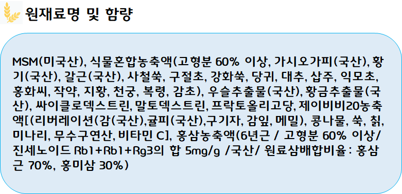 ※특이체질 및 알레르기 반응이 있으신 분들은 아래 성분표 참고하셔서 섭취 시 주의하시기 바랍니다.