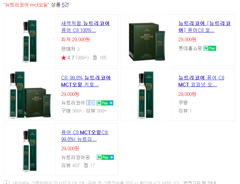 혹시나 궁금하신 분들을 위하여 뉴트리코어 mct 오일의 가격 정보를 드리면 250ml 기준 제품으로 29,000원의 정도의 가격이었어요.